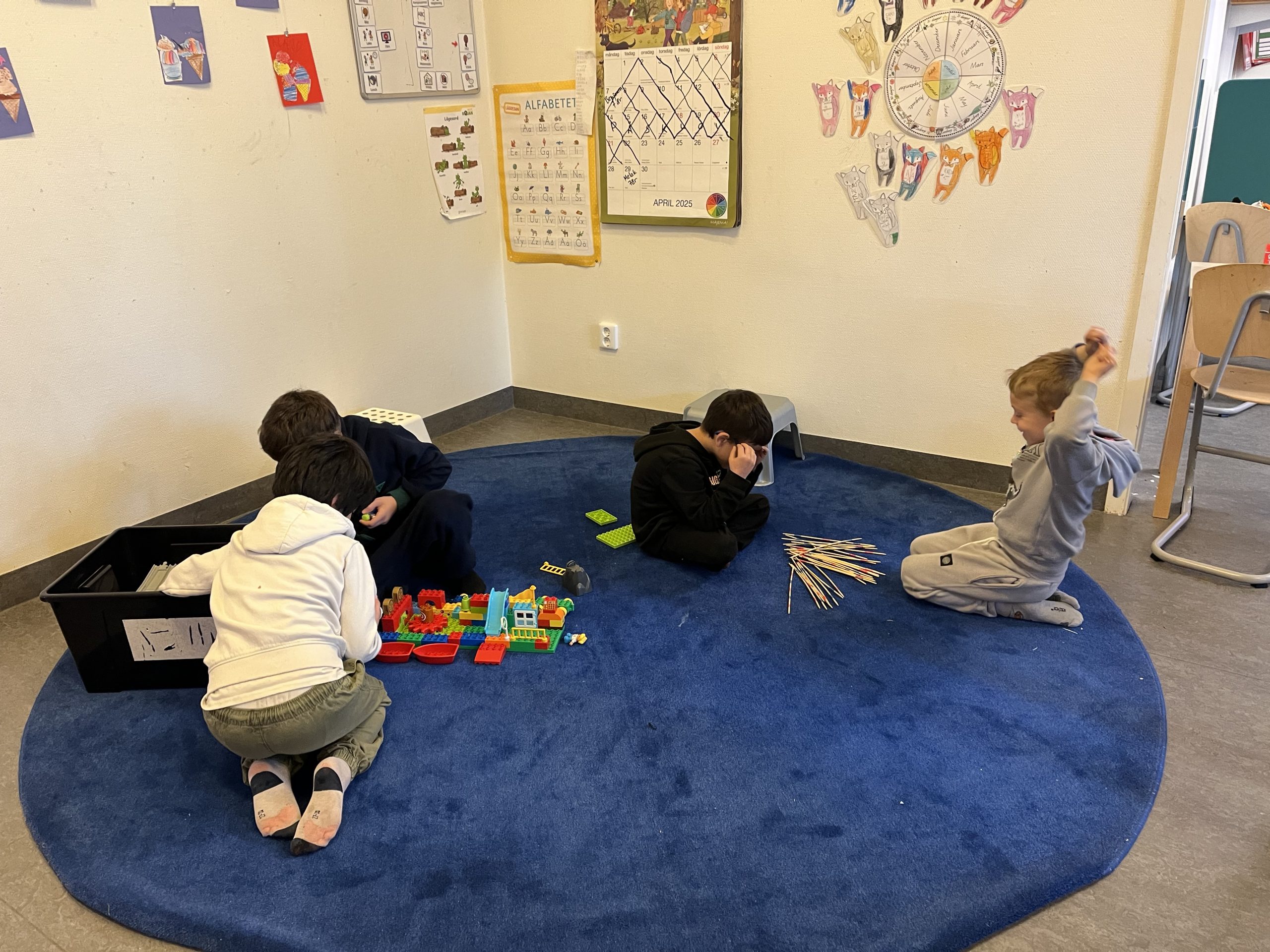 Besöket började med en rundvandring i de två förskoleklasserna. Barnen arbetade i små grupper med att skriva bokstäver, och nu, i slutet av terminen, hade de kommit till bokstaven Å. De övade också på att känna igen ord som började på bokstaven och skriva dem själva. Det märktes tydligt att barnen trivdes – både med varandra och med sin lärare.